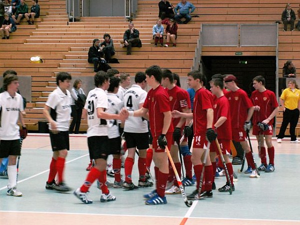 | Beim Berliner Curry Cup ging’s um die Wurst … 11.11.2008 - Zum dritten Mal veranstaltete der Berliner Hockey-Verband den Curry Cup für die Weibliche und Männliche Jugend B. Für den internationalen Charakter dieses Turniers sorgten - wie BHV-Präsident Erfried Neumann in seinem Grußwort hervorhob - einmal mehr die Jungen von Dinamo Moskau. Sie hatten vor zwei Jahren den ersten Curry Cup gewonnen, mussten diesmal aber mit dem 4. Platz vorlieb nehmen. In einer Neuauflage des MJB-Finales von 2007 setzte sich der SC Charlottenburg wieder gegen den Uhlenhorster HC aus Hamburg mit 5:1 (3:1) durch. Auf dem 3. Platz landete der Berliner HC, der wegen des deutlich schlechteren Torverhältnisses (im Gruppenspiel setzte es eine 0:11-Klatsche gegen den UHC) das Endspiel der beiden Tabellenführer verpasste. Bei der Weiblichen Jugend B wurde der gerade erst gekürte Feldmeister Großflottbeker THGC seiner Favoritenrolle gerecht. Mit Ausnahme eines 1:1-Unentschieden gegen den Berliner HC wurden alle Gruppenspiele sicher gewonnen. Beide Mannschaften standen sich im Endspiel erneut gegenüber, und hier ließen die jungen Damen aus Hamburg beim 6:1 (2:0)-Erfolg nichts mehr anbrennen. Zum Schluss bedankten sich die Teilnehmer, unter ihnen auch Damen-Bundestrainer Michael Behrmann als Coach der GTHGC-Mädchen, beim BHV für eine gelungene Veranstaltung im einmal mehr eindrucksvollen Ambiente des Horst-Korber-Sportzentrums. Jochen Kohl |