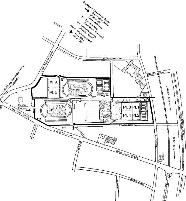 Die Hockeyspiele finden, wie in jedem Jahr, auf der Anlage des Ernst-Reuter-Sportplatzes in Berlin-Zehlendorf statt. Am besten erreicht man die Spielstätte mit der U-Bahn. Vom U-Bahnhof "Onkel Toms Hütte" sind es nur ncoh ca. 300m zu Fuß zu den Hockeyplätzen. Gespielt wird auf den Hockeyplätzen des BHC, Platz 1 (Kleinfeld Plätze 1 + 2) und Hockeystadion (Kleinfeld Plätze 3 + 4), und dem Hockeyplatz von Z 88, der Wanne (Kleinfeld Plätze 5 + 6).