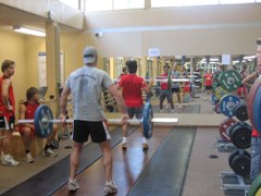 Im Training geht es hart zur Sache. Olli Korn holte sich eine Platzwunde am Hinterkopf, nachdem er einem Stock nicht mehr rechtzeitig ausweichen konnte. Schnell verarztet konnte Olli aber sowohl zur Golfpartie wie auch zu den nächsten Trainingseinheiten und zum Freitagsspiel antreten Krafteinheit im Sportinstitut.