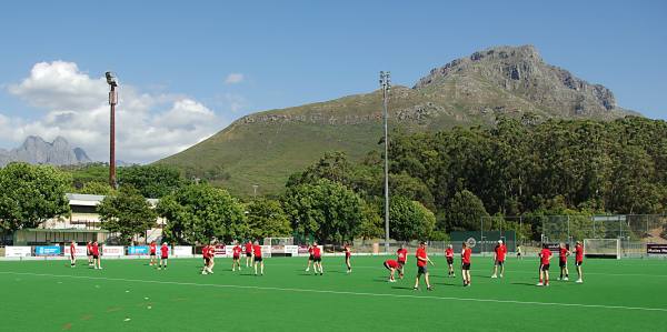 Begeistert ist Michi Behrmann über die Trainingsbedingungen in Stellenbosch: „Die Anlage ist top in Schuss, allein der Kraftraum, in dem wir heute waren, ist viermal so groß wie die in unseren Olympiastützpunkten und verfügt über die neuesten Geräte.“ Allein die Klima-Umstellung von Minusgraden in Deutschland auf über 30 Grad in Südafrika macht einigen Spielerinnen zu schaffen. Am Montag ist daher Regeneration vorgesehen, nur am Abend wird trainiert.