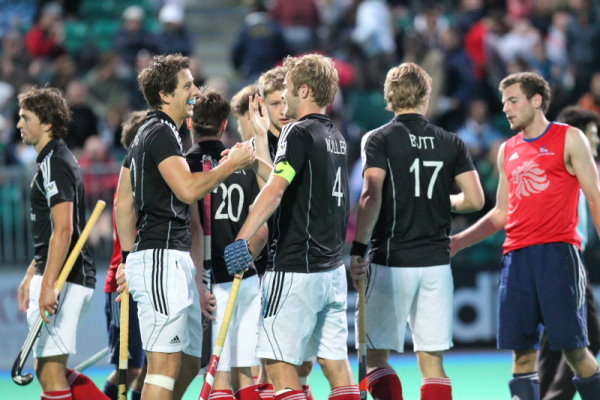14.07.2010 - Die deutsche Hockey-Nationalmannschaft der Herren hat beim Vier-Nationen-Turnier in Nottingham auch das zweite Spiel für sich entscheiden können. Im Rahmen des letzten Vorbereitungsturniers vor der Champions Trophy in Mönchengladbach (31. Juli bis 8. August) setzte sich das Team von Bundestrainer Markus Weise am Mittwoch gegen Gastgeber Großbritannien (personell quasi identisch mit Europameister England) mit 3:2 (2:1) durch und steht damit so gut wie sicher im Endspiel. Die Treffer für das deutsche Team erzielten Oskar Deecke, Moritz Fürste und Tobias Lietz.