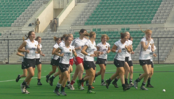 Unser Küken Lisa Keim stand genau richtig und konnte einen Schuss von Tatti mit dem Schläger unhaltbar ins australische Tor abfälschen, so dass wir am Ende verdient als Sieger den Platz verlassen konnten. Im Anschluss verfolgten wir das Spiel zwischen Junior Black Sticks und Indien, bei diesem Spiel erlebten wir indische Begeisterung einmal live. Geschätzte 200 Zuschauer verfolgten enthusiastisch das Spiel ihrer extrem jungen Mannschaft (neben zwei erfahrenen Spielerinnen mit 40 A-Kader Einsätzen spielen drei U16-Spielerinnen mit).