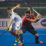 09.12.2014 - Die jungen, neu formierten deutschen Herren haben am Dienstagmorgen bei der Champions Trophy in Bhubaneswar ihre zweite Lehrstunde in Sachen Effizienz bekommen. Gegen Argentinien ging es darum, wer Zweiter der Gruppe werden würde, und dafür brauchte das DHB-Team wegen des schlechteren Torverhältnisses einen Sieg. Doch gegen ganz tief stehende, nur auf ihre überfallartigen Konter lauernde Argentinier tat sich das Team eine Halbzeit lang extrem schwer, während die Argentinier ihre wenigen Chancen sehenswert nutzten. Trotz 60:40 Ballbesitz und höherer Chancenanzahl stand es so nach 60 Minuten 0:3.