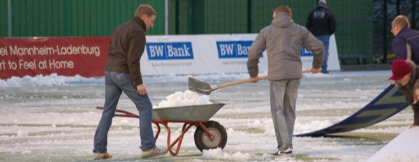 In Mannheim war der Platz trotz großer Mühe nicht bespielbar