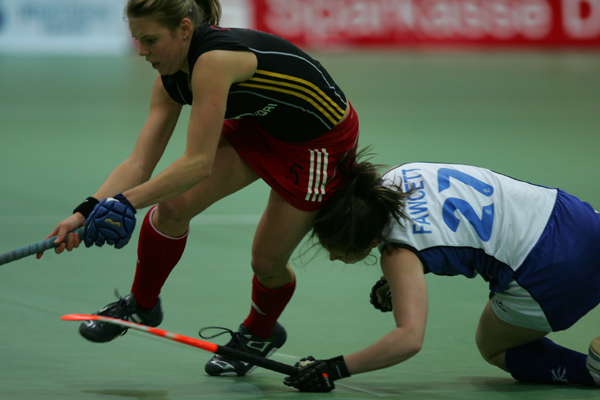 Die deutschen Damen hatten das Spielgeschehen fest im Griff, kombinierten gut, setzten die Ball führenden Schottinnen früh unter Druck und erarbeitete sich einige gute Chancen. Doch der Gegner stand tief und verteidigte gut. So dauerte es bis zur 18. Minute, bis Anneke Böhmert die hoch verdiente 1:0-Führung per Strafecken-Variante erzielte. Jetzt war der sprichwörtliche Knoten aber geplatzt. Laura Keibel legte wenig später mit einem sehenswerten Heber unter die Latte nach.
