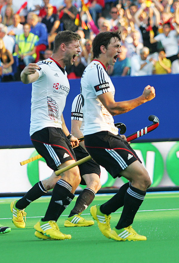 23.08.2013 - Die deutschen Herren sind mit ihrer besten Turnierleistung bei der Europameisterschaft in Boom völlig verdient ins Finale eingezogen. Gegen die Niederlande ließ sich das Team auch nicht durch einen unglücklichen 1:2-Halbzeitrückstand aus dem Konzept bringen, sondern blieb das überlegene Team und drehte die Begegnung in einen 5:3-Sieg. Mats Grambusch (2), Tobias Hauke, Thilo Stralkowski und Oskar Deecke trafen zum ersten Halbfinalsieg bei einer EM gegen ein niederländisches Team. Gegen wen das DHB-Team am Sonntag seinen Titel in Boom verteidigt, entscheidet sich erst im zweiten Halbfinale zwischen England und Gastgeber Belgien.