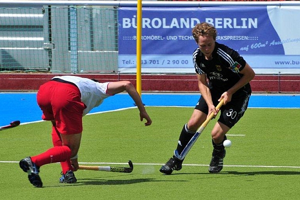 08.07.2010 - Die junge deutsche U21-Nationalmannschaft der Herren hat ihr zweites Testspiel im brandenburgischen Großbeeren gegen das polnische A-Team 3:3-Unentschieden (3:2) gespielt. 18 Stunden nach dem 2:1-Erfolg im ersten Aufeinandertreffen führte erneut der Gast 1:0, ehe Ricardo Nevado, Patrick Hablawetz und Tobias Matania die Partie auf 3:1 drehten. Mit zwei weiteren erfolgreichen Strafecken glichen die Polen, die erneut durch Undiszipliniertheiten mehrere Zeitstrafen kassierten, noch zum 3:3-Endstand aus. Nach diesem letzten Test steht nun als nächstes die Europameisterschaft in Polen (25. bis 31. Juli in Siemianowice Slaskie) für das Mülders-Team auf dem Programm.