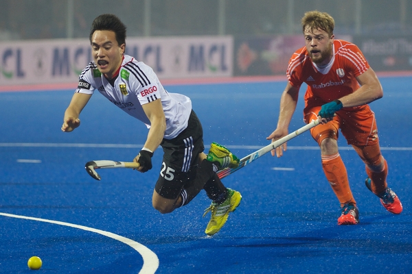 07.12.2014 - Die deutschen Herren haben im zweiten Spiel der Champions Trophy in Bhubaneswar eine deutliche 1:4-Niederlage gegen Vize-Weltmeister Niederlande hinnehmen müssen. Das DHB-Team war dabei nicht unbedingt das schlechtere Team, machte aber zu wenig aus seinen Chancen, während die Oranjes sehr effizient in der Verwertung ihrer Möglichkeiten waren. Damit übernahm Holland die alleinige Tabellenführung in der Gruppe. Das DHB-Team spielt im letzten Vorrundenspiel am Dienstag nun gegen Argentinien.