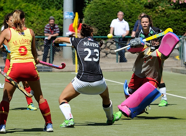 Als in der 40. Minute eine Flanke von rechts an den Pfosten klatschte und hinter die Keeperin sprang, reagierte Selin Oruz nur hauchdünn zu spät. Kurz darauf aber Strafecke. Krügers Schlenzer ging an den linken Pfosten, von wo der Ball zur Herausgeberin Franzisca Hauke sprang, die aus etwa acht Metern vollstreckte (40.). Eine Ecke der Spanierinnen im Gegenzug ging zwar ins Tor, aber der Schlag war über Bretthöhe. Pech für die Deutschen, dass Kristina Hillmann in der nächsten Szene auf der spanischen Torlinie den Ball an den Fuß geschossen bekam.