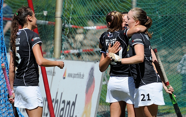 Doch die Antwort der Gäste kam prompt. Im Gegenzug erreichte ein langer Ball Carlota Petchame, die allein im Kreis erst per Stecher an Frank scheiterte, aber den Nachschuss zum 1:1 nutzen konnte. Nach der Halbzeitpause dann ein ganz anderes Bild. Die Deutschen pressten hoch, setzten den spanischen Aufbau stark unter Druck und sorgten so für Ballverluste. Das 2:1 durch Eileen Hoffmann fiel in der 34. Minute, als die UHCerin am langen Pfosten eine Flanke ins Tor stach. Mävers hatte in ähnlicher Szene Pech, dass sie einen harten Pass von Altenburg gerade eben nicht mehr erreichte (39.).