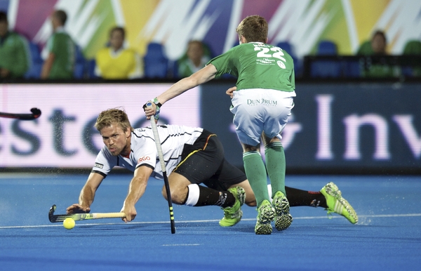 Die nächste Strafecke der Deutschen sollte als Stechervariante gespielt werden, endete aber mit einem ungeahndeten Foul an Christopher Wesley (32.). Deutschland blieb am Drücker: Angriff über rechts, Martin Häner spielte Marco Miltkau von der Grundlinie aus an, aber der blockt aus kurzer Distanz über das Tor (36.). Irland lief gelegentlichen gute Kontern, die aber zumeist ebenso gut gestoppt wurden. Florian Fuchs versuchte es mit einer Rückhand von halbrechts, aber Keeper Harte hielt sicher (40.). Die Chancen häuften sich jetzt. Niklas Wellen brachte den Ball mit der Rückhand aufs Tor, Marco Miltkau hielt dem Schläger zum Stecher hin, aber der Ball landete am Außenbrett (45.).