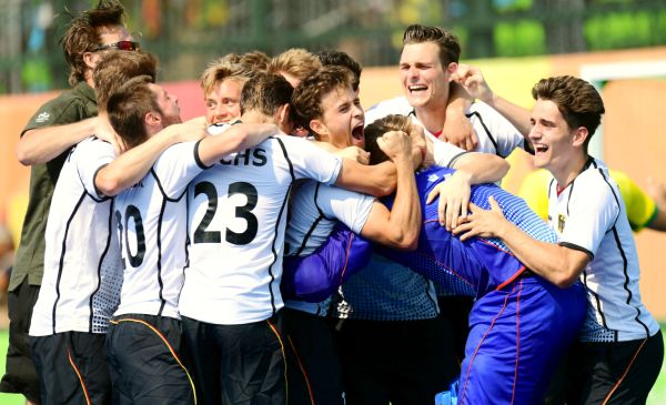 18.08.2016 - Der deutschen Herren haben sich in einem dramatischen Spiel um Platz drei bei den Olympischen Spielen in Rio die Bronzemedaille geholt – nach Bronze 2004 und Gold 2008 und 2012 die vierte olympische Medaille in Folge! In einem einseitigen Spiel, das die DHB-Herren in allen Belangen dominierten, mussten sie trotzdem einen 0:1-Rückstand durch Mats Grambusch ausgleichen, so dass das Spiel im Penaltyschießen entschieden wurde. Und da zeigte Keeper Nicolas Jacobi seine ganze Klasse. Während alle Deutschen trafen, hielt er zwei Penaltys, so dass Moritz Fürste in seinem letzten Spiel in der Nationalmannschaft als letzter Schütze gar nicht mehr antreten musste.