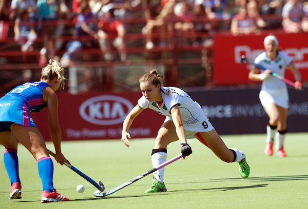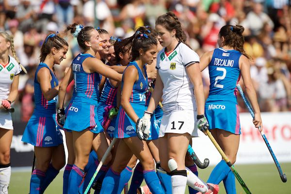 Doch als Hanna Granitzki nach Grüner Karte vom Platz musste (16.), nutzten die Leoncitas gleich die erste Chance in Überzahl zum Führungstreffer. Julieta Jankunas hatte sich rechts in den Kreis gedribbelt und dann aus der Mitte mit der Rückhand hart abgezogen (17.). Das deutsche Team kam mit dem hohen Spieltempo, das die Argentinierinnen anschlugen, nicht zurecht und hatte in dieser Phase Schwierigkeiten, offensiv selbst etwas Nennenswertes zu kreieren.