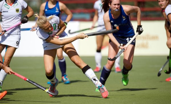 Gablac prüfte die Keeperin mit einer schönen Rückhand, weil immer wieder frühe Balleroberungen die Stürmer in gute Positionen brachten. In den ganz wenigen Situationen, in denen Frankreich mal an die deutsche Viertellinie kam, stand die Hintermannschaft sehr sicher. Sechs Minuten vor Halbzeit schließlich die zweite Überzahl, nachdem eine Französin Grün wegen Stockschlagens gesehen hatte. Und die Deutschen nutzten die Überzahl, als ein Freischlag links wieder schnell ausgeführt wurde, ging der Ball über die rechte Seite vors Tor, wo Alisa Vivot für das 6:0 (30.) sorgte.