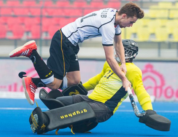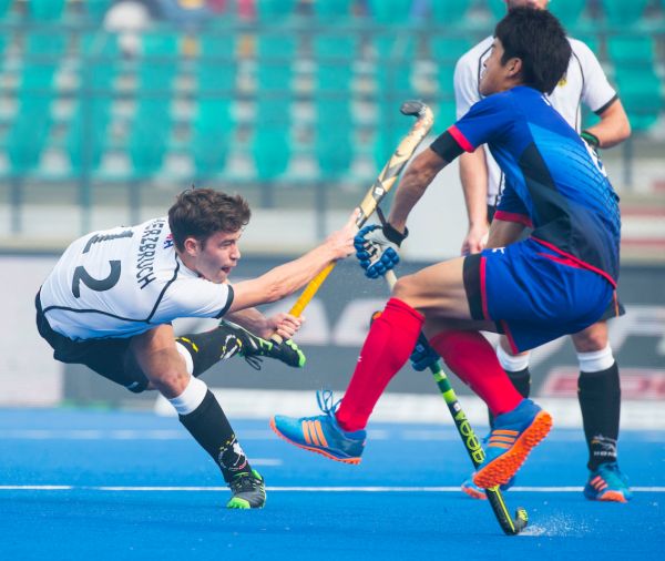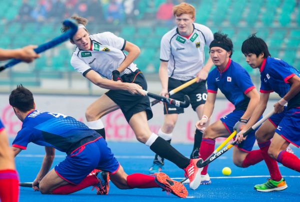 11.12.2016 - Für die deutschen Junioren endete die Gruppenphase der U21-WM in Indien mit dem dritten Sieg im dritten Spiel. Das Team von Bundestrainer Valentin Altenburg machte mit dem auch in der Höhe verdienten 6:1 (2:0) gegen Japan alles klar in Gruppe C. Der bereits zum zweiten Mal zum „Man of the Match“ gekürte Anton Boeckel (2), Constantin Staib, Thies Prinz, Timm Herzbruch und Lukas Windfeder sorgten für die sehenswerten Treffer. Die Deutschen treffen nun im Viertelfinale am Donnerstag um 9.00 Uhr morgens deutscher Zeit auf England, den zweiten der Gruppe D. (Fotos: Worldsportpics.com)